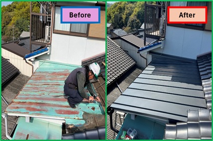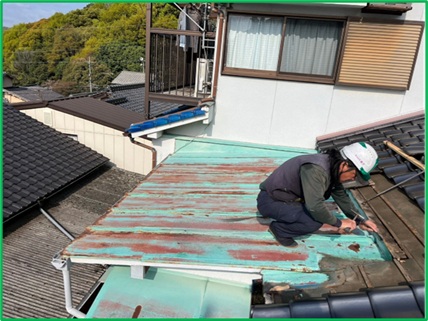 三原市西町 S様邸 既存屋根の瓦棒屋根が劣化していたため立平屋根に葺き替えのご依頼を頂きました。