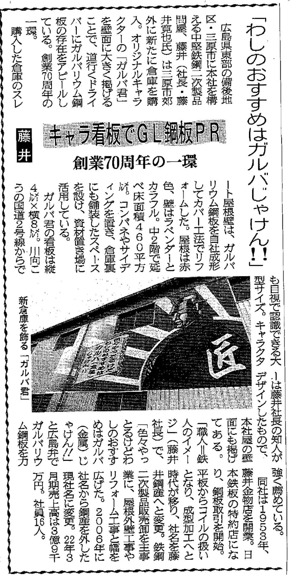 新聞に当社の記事が掲載されました! | お知らせ | 新着情報 | 建築板金・リフォーム・建材卸の事なら三原の株式会社 藤井へ