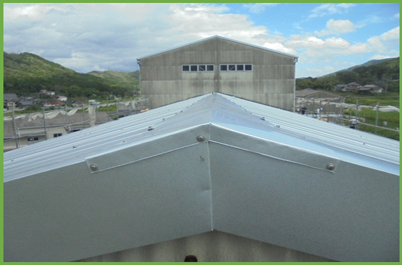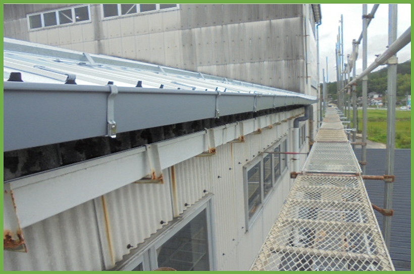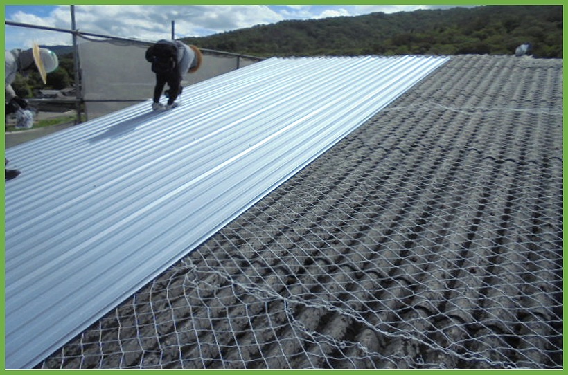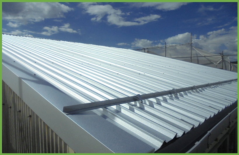 M工場はスレート屋根であった為、スレート屋根上にリフレアルーフを葺くカバールーフ工法を行いました。このカバールーフ工法のメリットとして