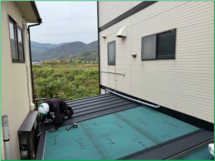 広島県竹原市竹原町のT様邸の増築工事に伴い、屋根の立平葺きを行いました。